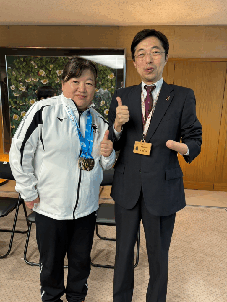 全国障害者スポーツ大会で5連覇達成した飯星さんによる熊本県知事表敬訪問