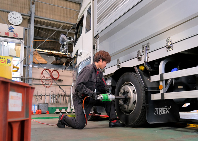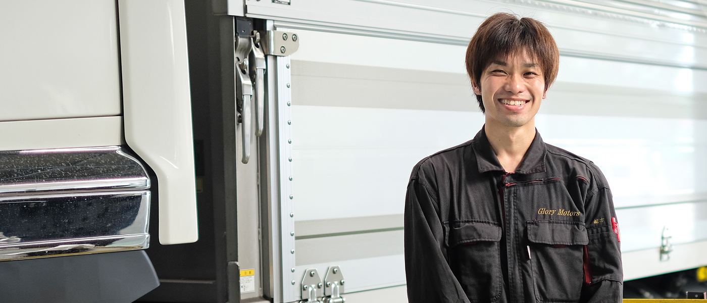 子どもの頃、父が自分の車を整備している姿を見て、「面白そう」と感じたのが、整備に進むきっかけでした。電気系統の作業などを少し手伝わせてもらううちに、自然と車が好きになっていったのです。高校卒業後は、一貫して整備の仕事に携わっています。九州栄孝エキスプレスに入社する前は、3年間バスの整備を担当していました。バスとトラックではエンジンの位置が異なり、整備の勝手も大きく違うため、日々新しい発見があります。